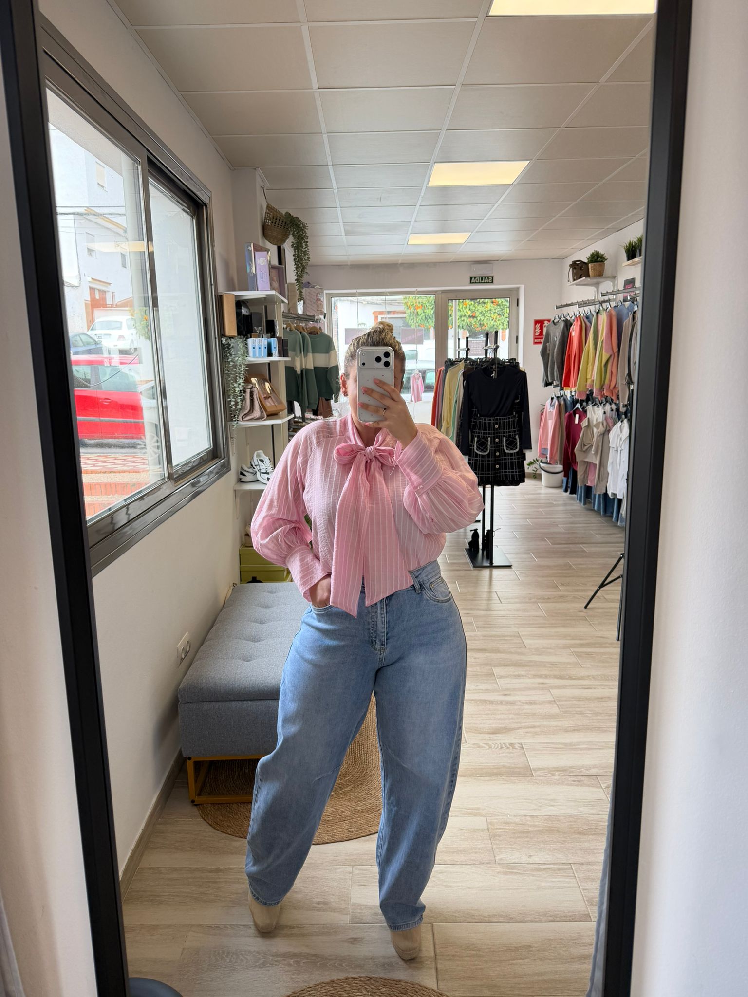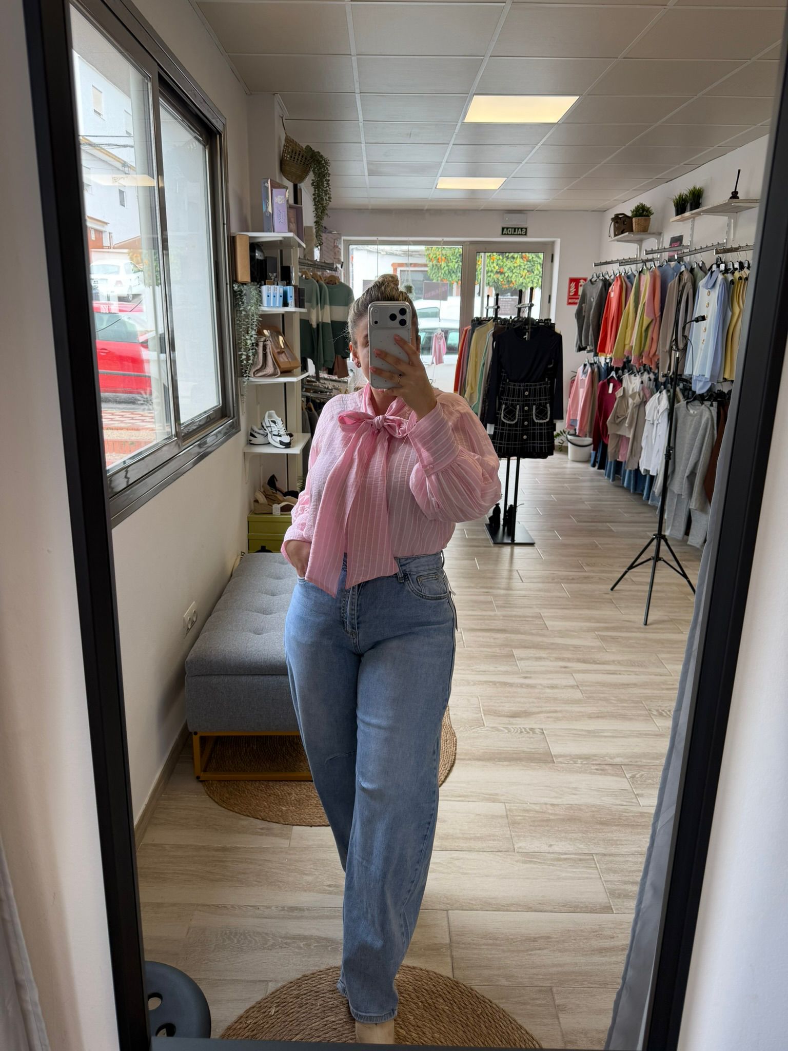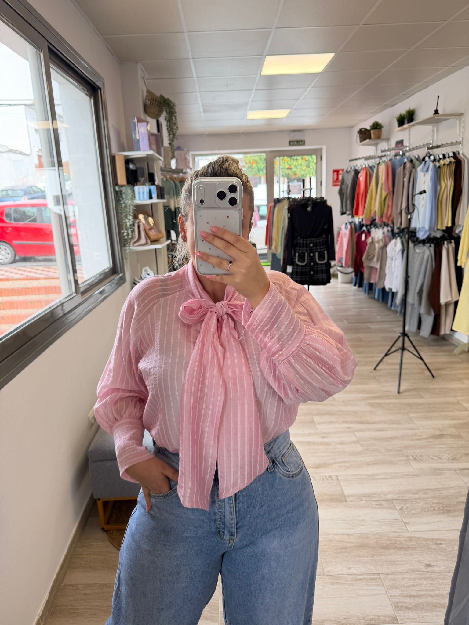 Camisa abotonada con lazo en el cuello , puños de camisa abotonado , tejido super fluido