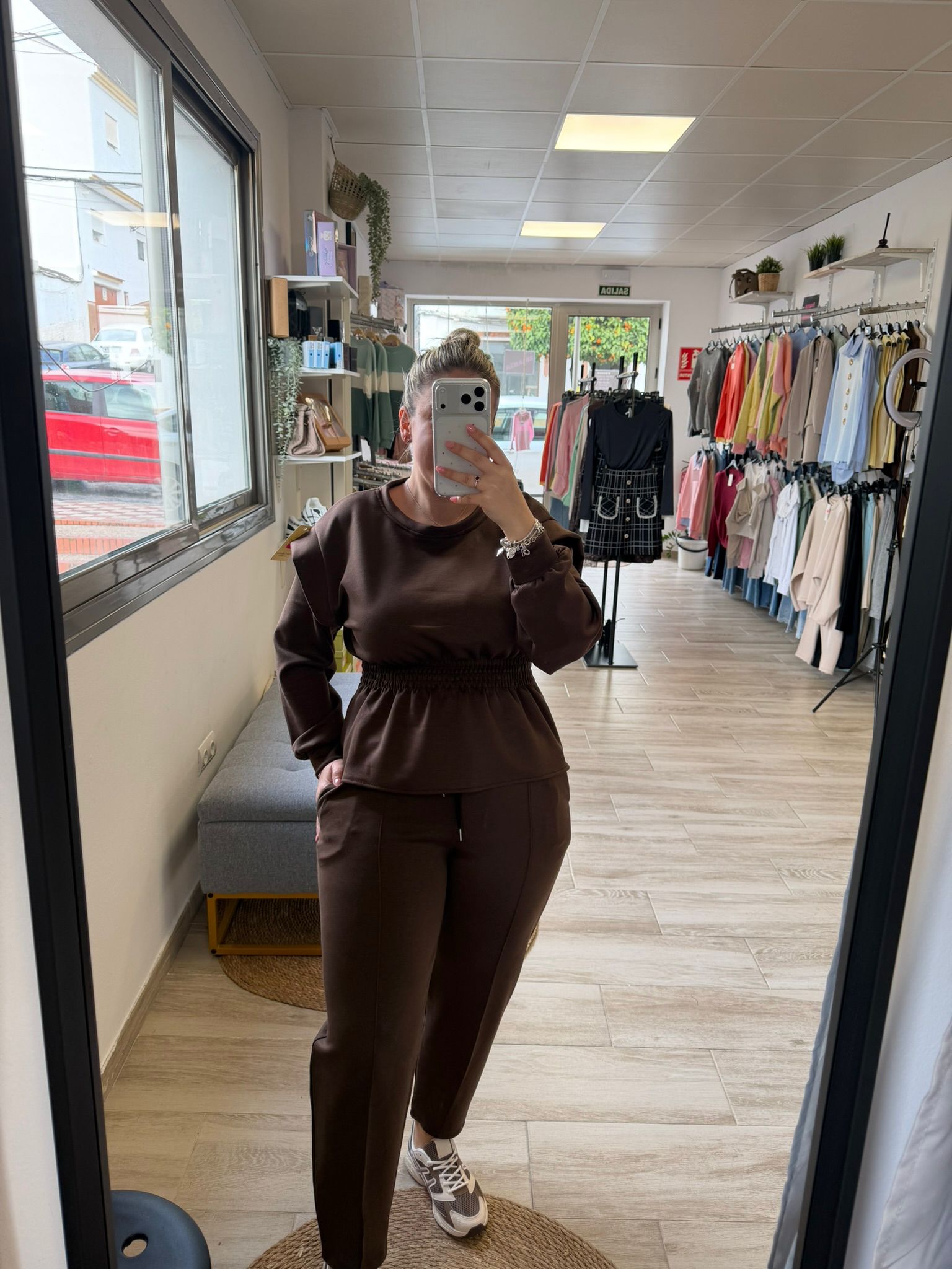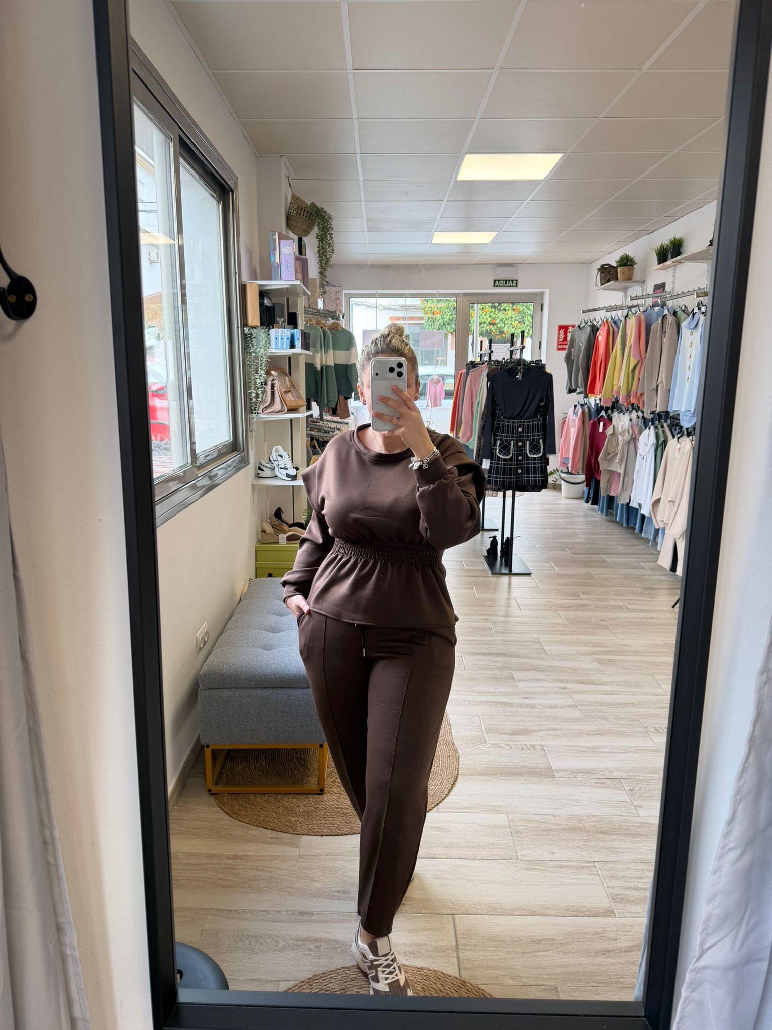 Chandal en tejido de capa de aire , talla unica , sudadera con detalles en volante en el hombro y cintura , da bastante talla